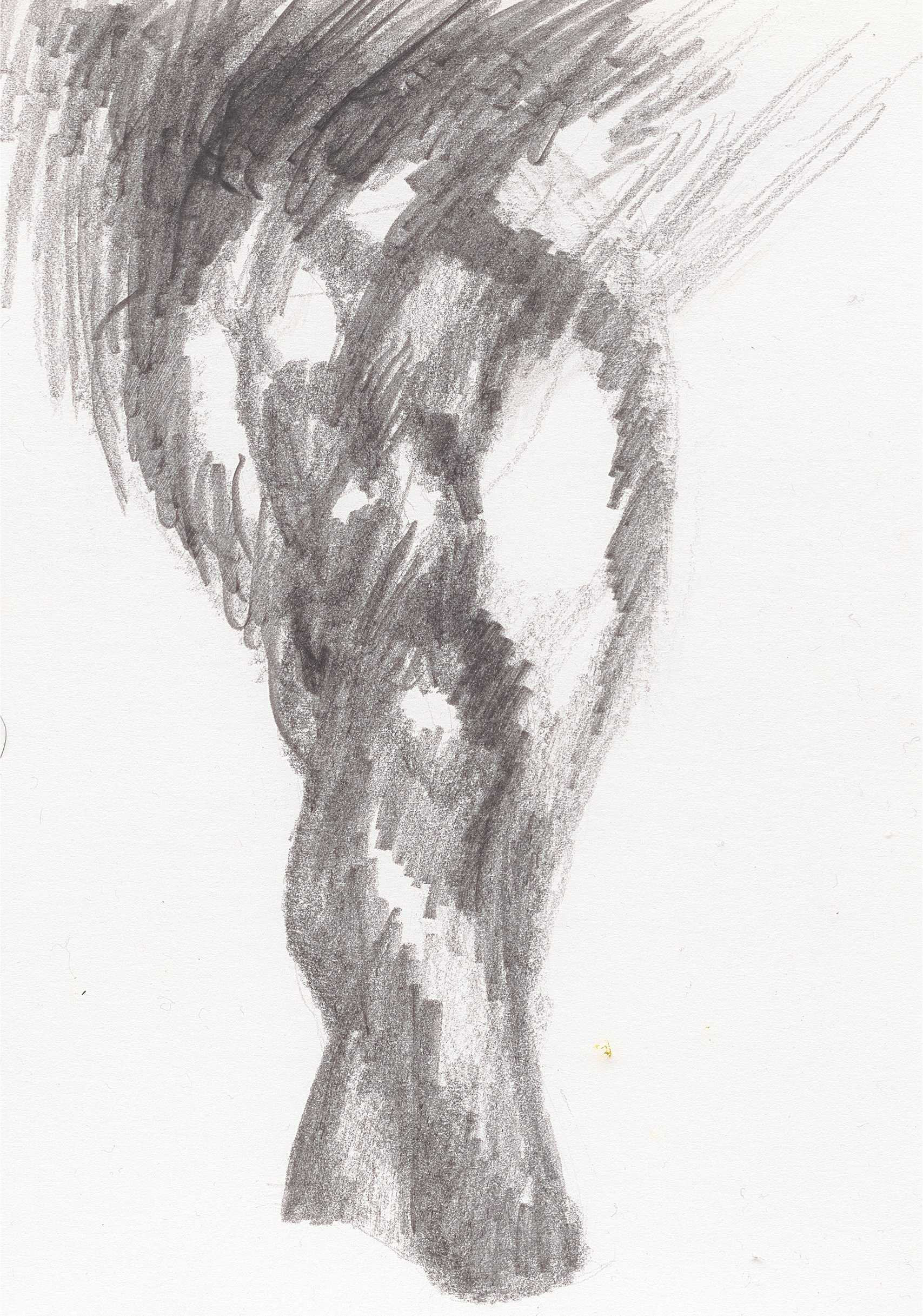 The background is stark and minimal, allowing the focus to remain entirely on the figure. Smudges and faint graphite marks around the cyclone create a subtle aura of turbulence, as if the storm is expanding beyond the confines of the body. The piece evokes feelings of inner conflict, emotional upheaval, and the breaking point of human endurance, making it as emotionally charged as it is visually striking.