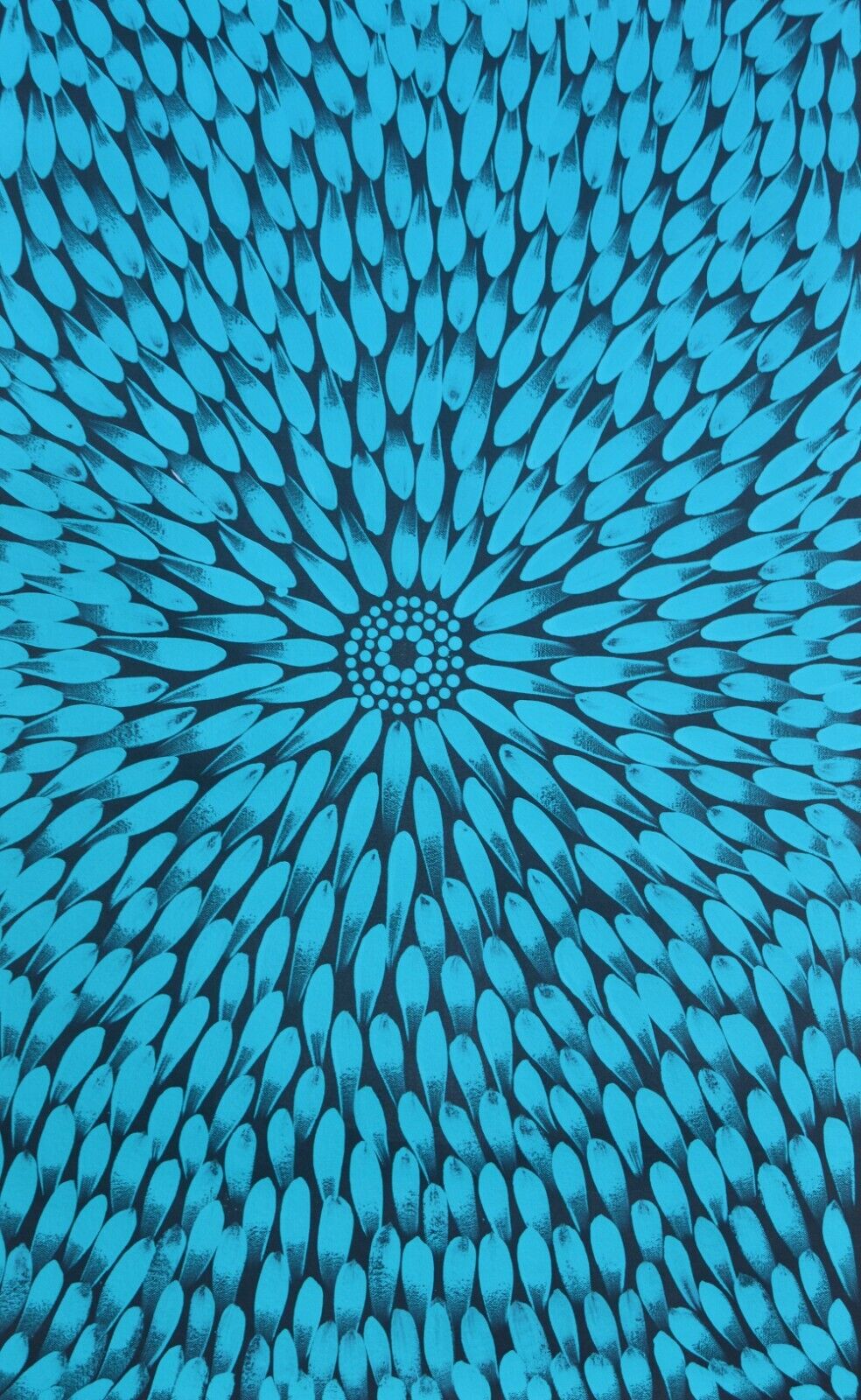 This piece was acquired in December 2023 from Darwin, a former frontier outpost and now the capital of Australia's Northern territory. Painted in the unforgiving heat of an Australian summer, by an aboriginal artist. The Aboriginal people are known to channel their cultural stores through traditional art and this piece exudes